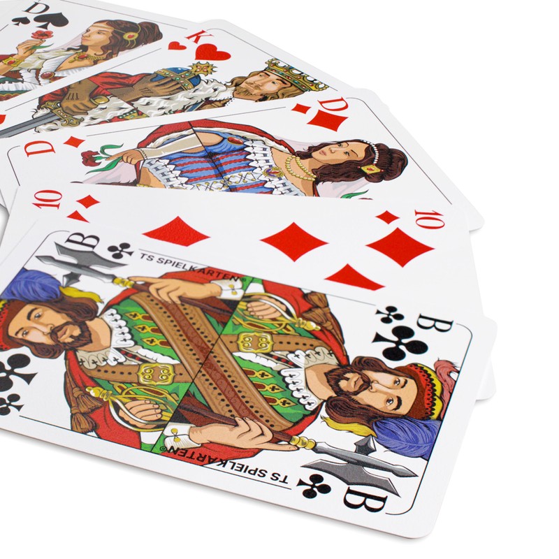 - The double head card game is particularly grippy thanks to the original linen material and significantly longer durable than conventional paper and cardboard cards. The cards are wipeable.