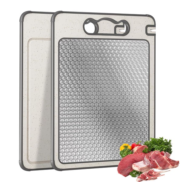 - 【Vielseitig einsetzbar】: Das Doppelseitiges Cutting Board nimmt weder Essensgerüche auf noch bildet es leicht Bakterien und sorgt so dafür, dass Ihre Küche sauber und hygienisch bleibt. Egal ob Sie Gemüse schneiden, Fleisch schneiden, Brot kneten usw., unser Mehrzweck-Titan Schneidebrett wird Ihren Anforderungen gerecht.