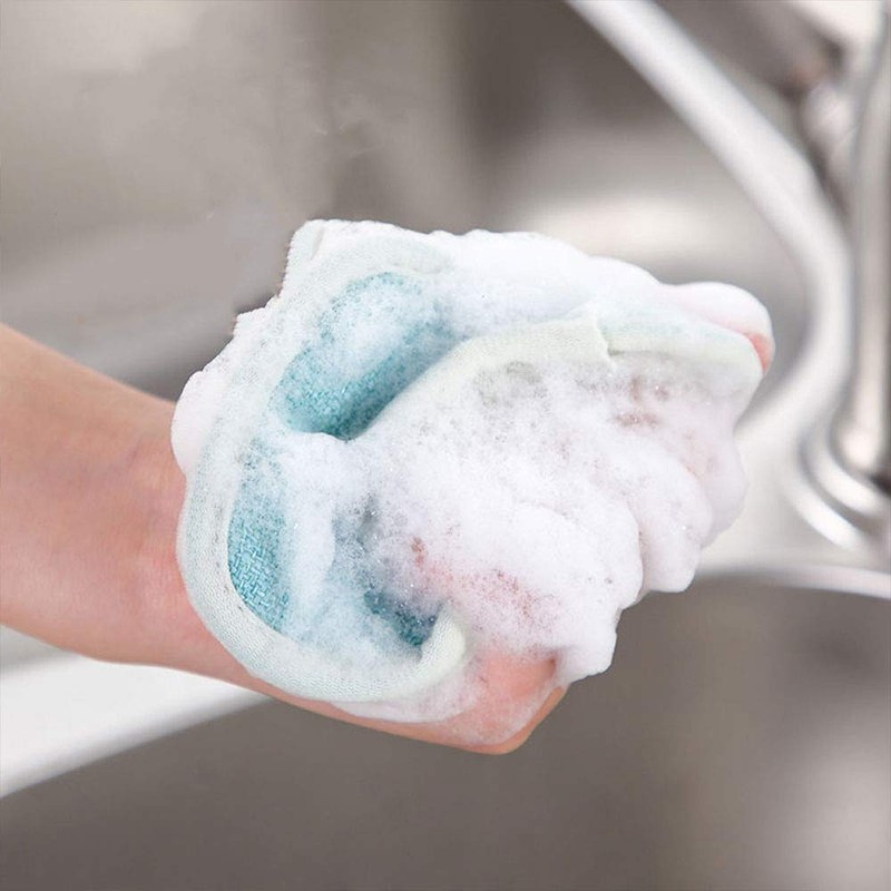 Doppelseitiger Scheuerschwamm für die Küche, antibakteriell, Mikrofaser, Dual-Action-Schwämme, Schwämme, Scheuerschwamm, zufällige Farbe, 4 Stück