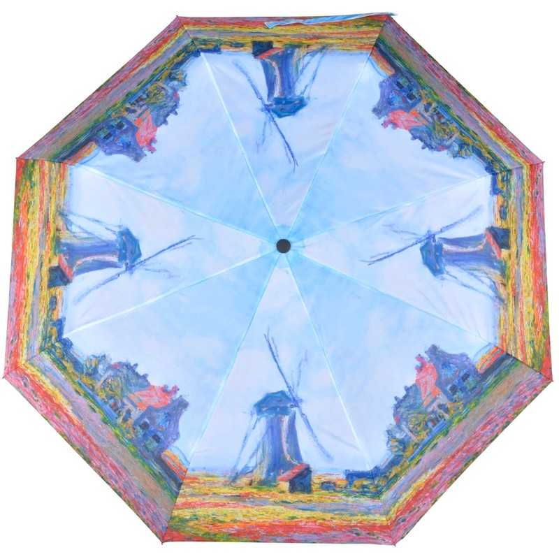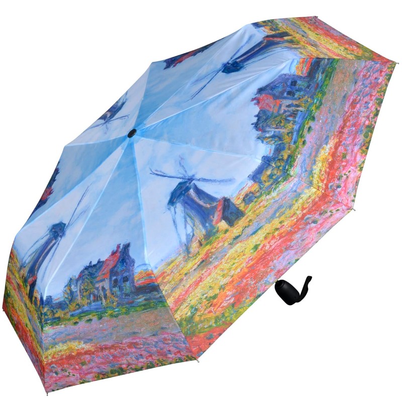 • This umbrella features the "Tulip Fields with the Rijnsburg Windmill" by Claude Monet. He was an important French painter whose middle period of creativity is assigned to the style direction of Impressionism.