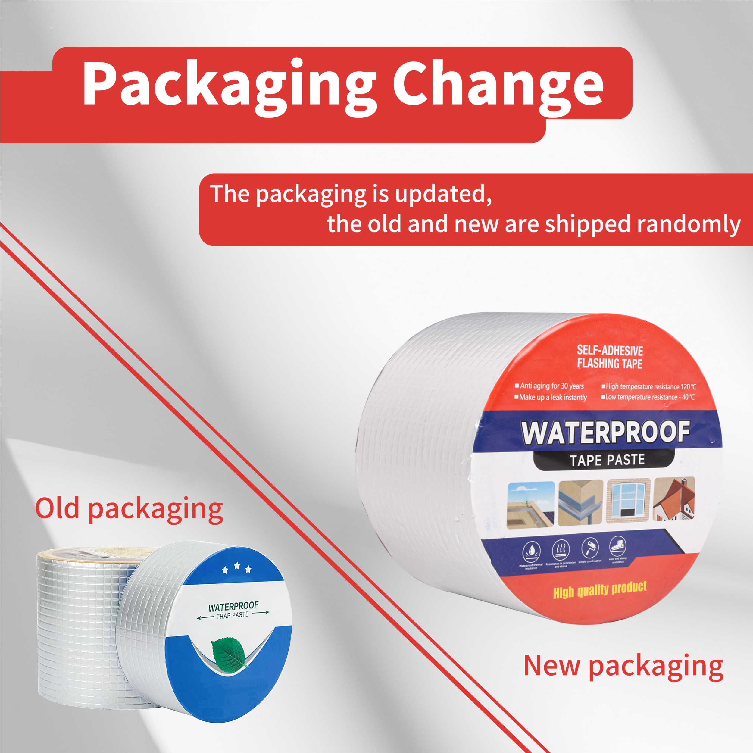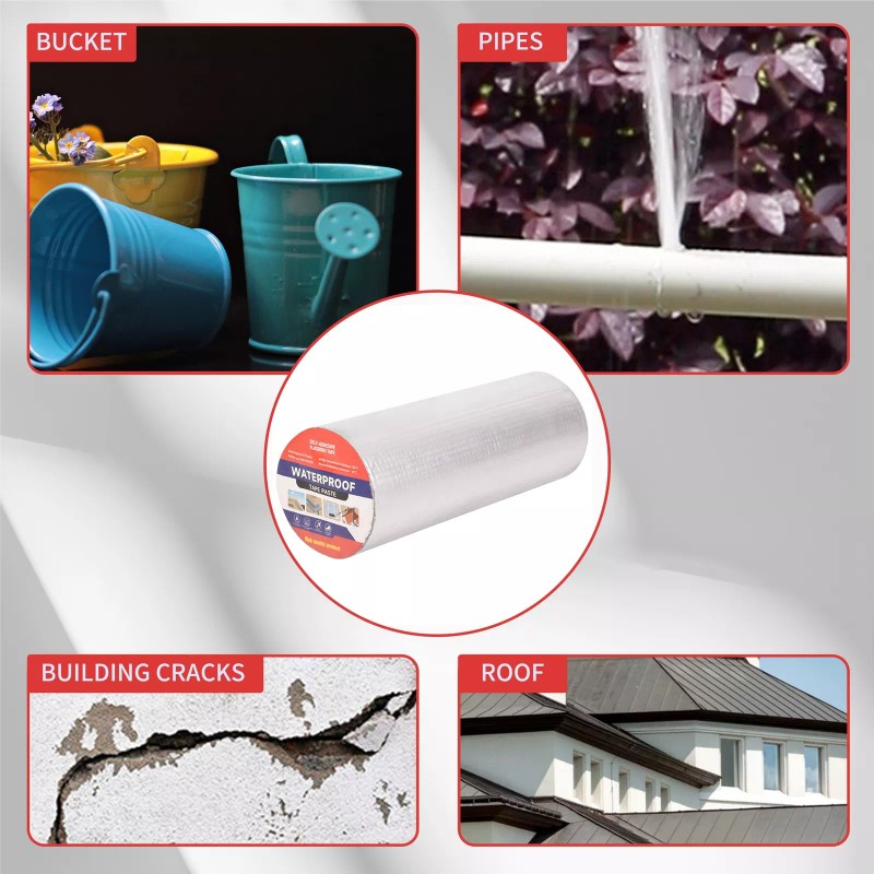 SAFE&DURABLE--This waterproof repair tape for leaks is made of aluminum foil and butyl rubber. Butyl rubber is environmentally friendly material, and has a high viscosity. The small, square aluminum foil structure on the surface is abrasion-resistant and scratch-resistant. It also has a reflective and heat insulating effect. Don't have to worry about damage to the surface of the object from high temperatures.
