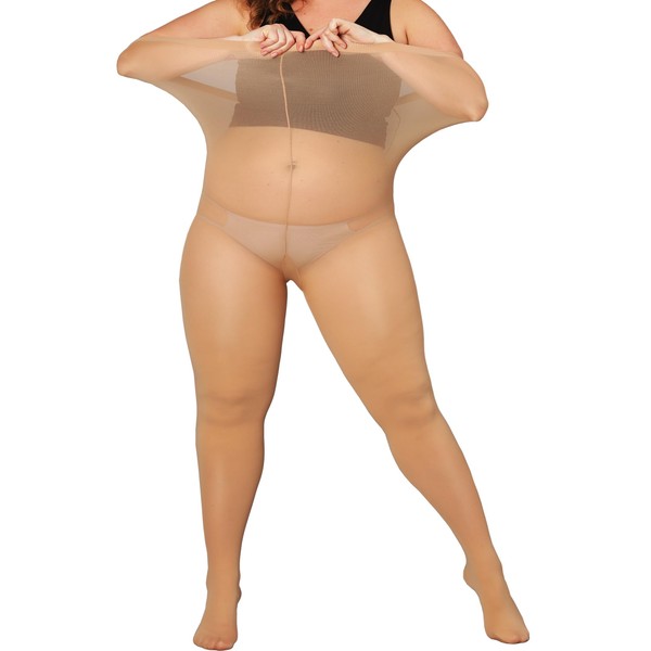 DORALLURE Women's Tights Large Sizes 60 Denier Semi-Opaque Nylon Tights, Dark Nude.