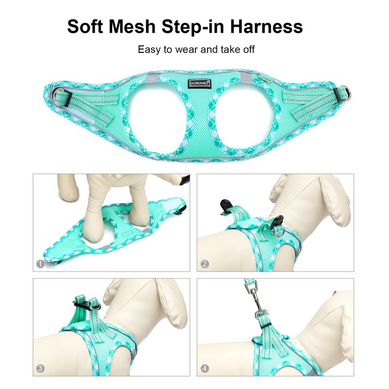 DORAMIO Step-in Dog Harness and Lead Set, Soft Mesh Reflective Vest Harness for Small Medium Dogs, Cats