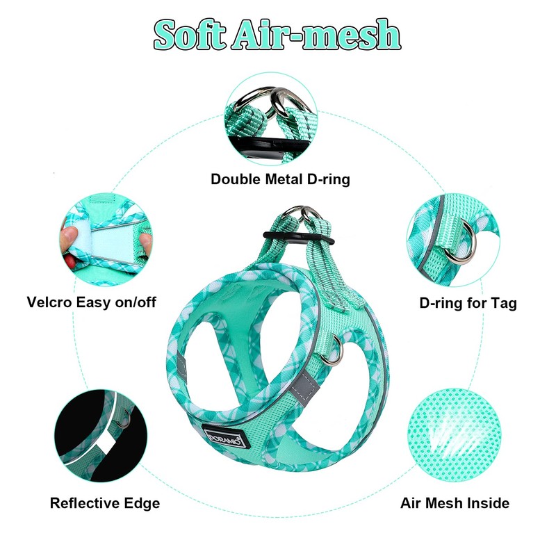 DORAMIO Step-in Dog Harness and Leash Set, Soft Mesh No-Chock Reflective Breathable Easy Walk Lightweight Vest Harnesses with Safety Buckle for Small Medium Dogs, Cats, Puppies (Light Green, XS)