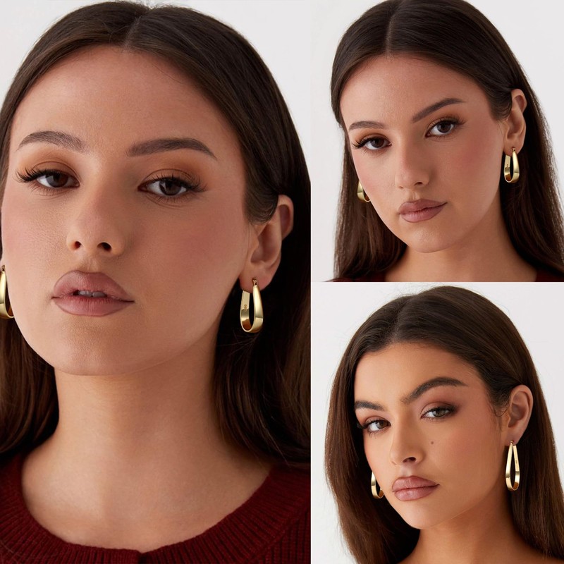- Oval Gold Hoop Earrings:The big hoops earrings intertwining loops create a captivating visual effect that is both elegant and modern.Long-lasting color retention that won't turn your ears green.Gold hoops is very flexible and the secure clip-top design makes it easy to open and close. The safe clasp let you say goodbye to the trouble of earrings falling off your ears!