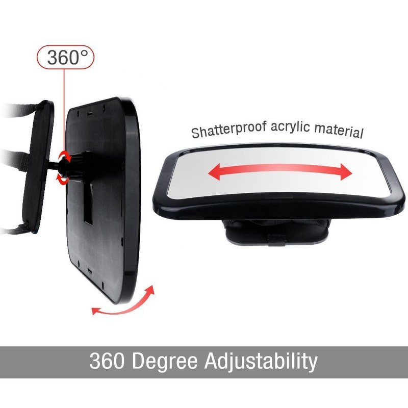 The adjustable nylon straps allow the mirror to securely attach to most vehicle head restraints, while its hard ABS frame with rounded edges prevents finger scratching.