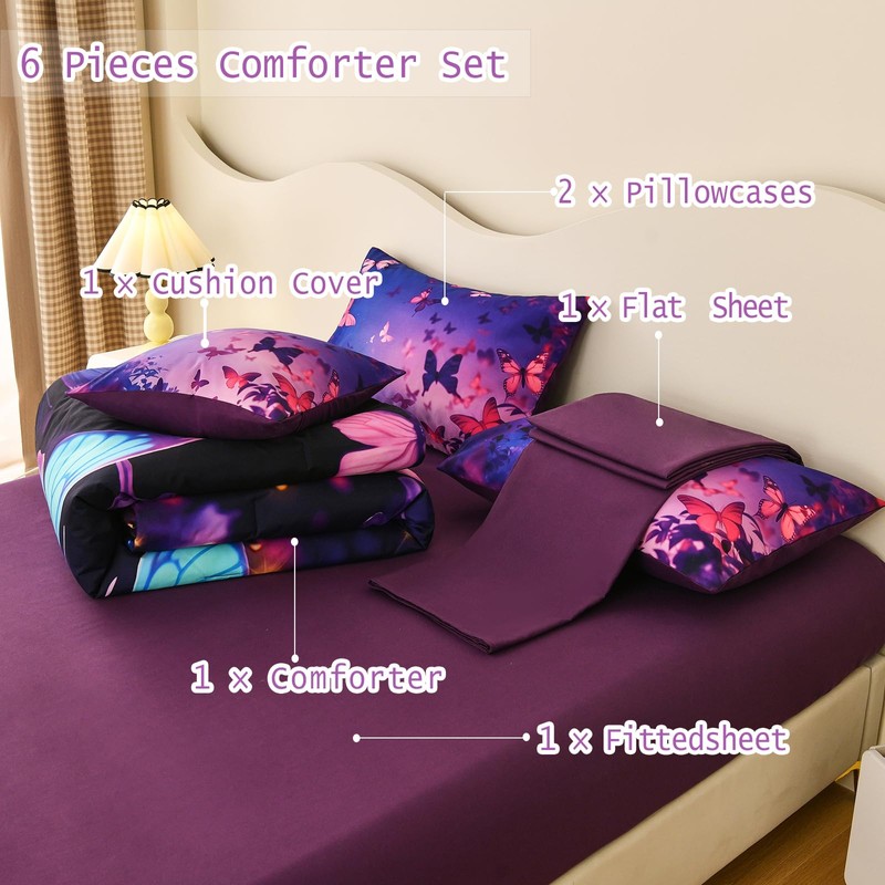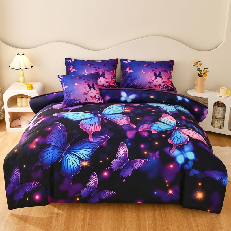 - [Features]: Butterfly comforter microfiber filling, tightly stitched to prevent the filling from clumping or moving, fluffy and light. This twin bedding set is great for sleeping.