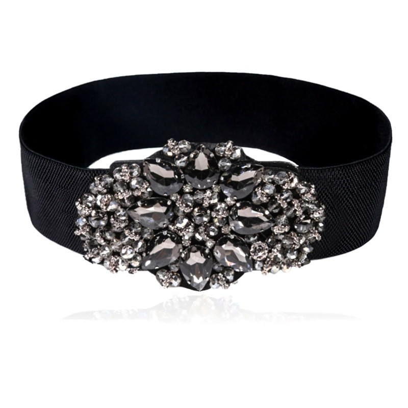 Dorchid Women's Sparkly Beaded Belt Big Rhinestone Belts Wide Elastic Stretchy Belt for Dressy Gowns Black XL-3XL(36~43")