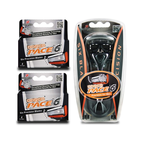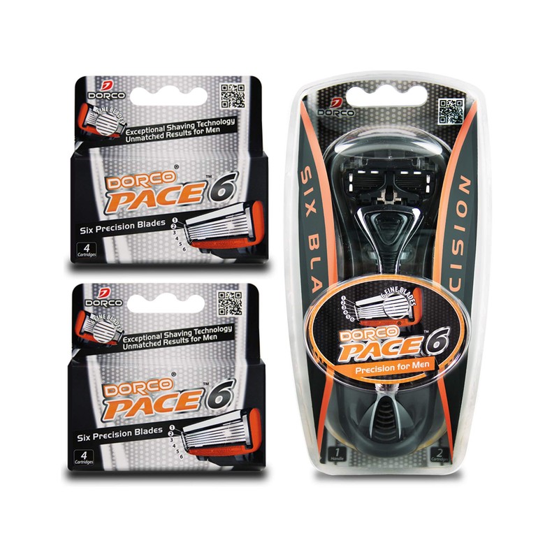 What's in the Package?10 long-lasting Dorco Pace 6 cartridges and one high-quality handle.