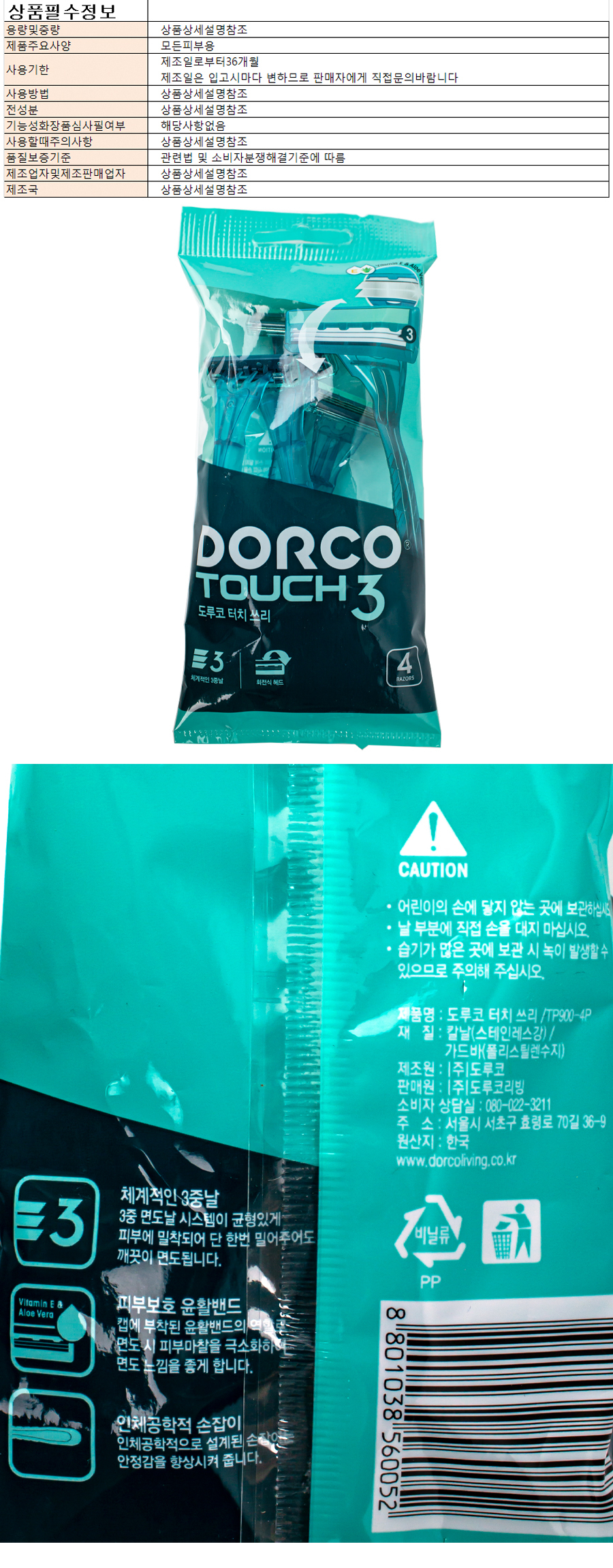 Dorco Touch 3 Razor 4-Count Pack 3ea