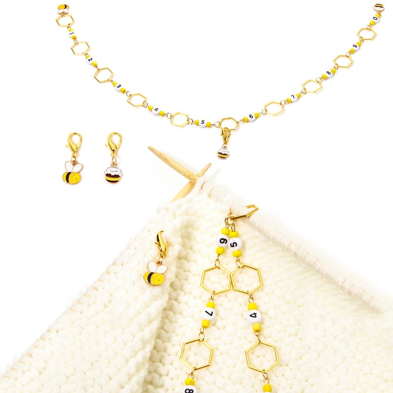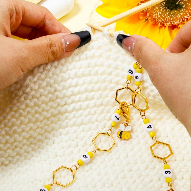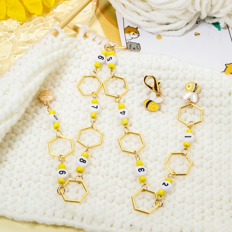 - Quality Row Counter – These row counter chains consist of high quality gold plated alloy honeycomb rings, acrylic beads from 0-9, enamel honey pot charm, enamel honey pot stitch marker, enamel honey bee charm, enamel honey bee stitch marker. The smooth edges will hardly snag your yarn or artworks and keep locking on your knitting works securely. With this feature, you can tightly reposition, fix and mark the stitches easily
