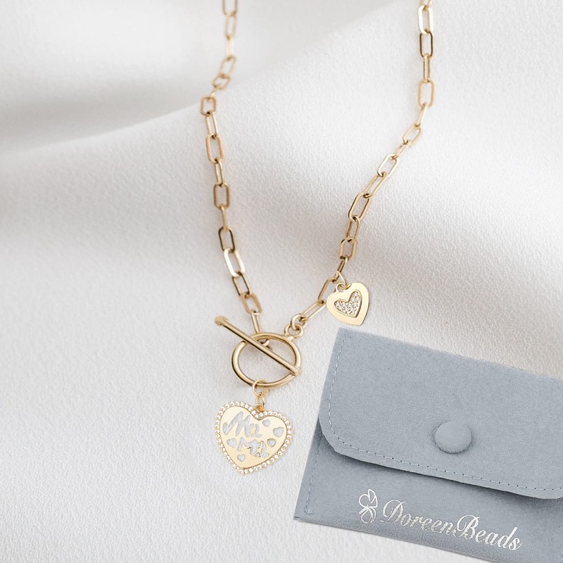 DoreenBeads Mama Heart Toggle Necklace for Women-18K Gold Plated Paperclip Chain Necklace with Front Toggle Clasp Jewelry Gift 20"