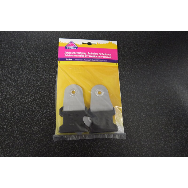 The Dorema safelock mounting kit contains 2 straps with clips and 2 rubber bungs/washers.