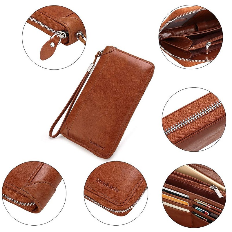 DORIS&JACKY Women Leather Wallet Rfid Blocking Large Capacity Zipper Around Travel Wristlet Bags