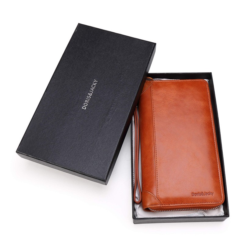DORIS&JACKY Women Leather Wallet Rfid Blocking Large Capacity Zipper Around Travel Wristlet Bags