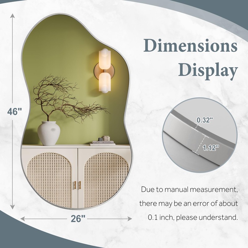 - Asymmetrical Design: These wall mirrors have shaped designs has unique lines, which can improve the beauty and art of space, suitable for the living room, bedroom, hallway, and dressing room.