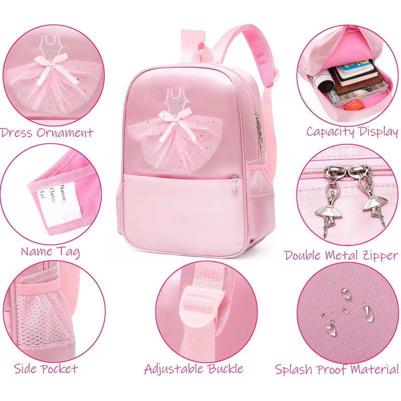 Dorlubel Cute Ballet Dance Backpack Tutu Dress Dance Bag with Key Chain Girls (Pink8 of Dress)