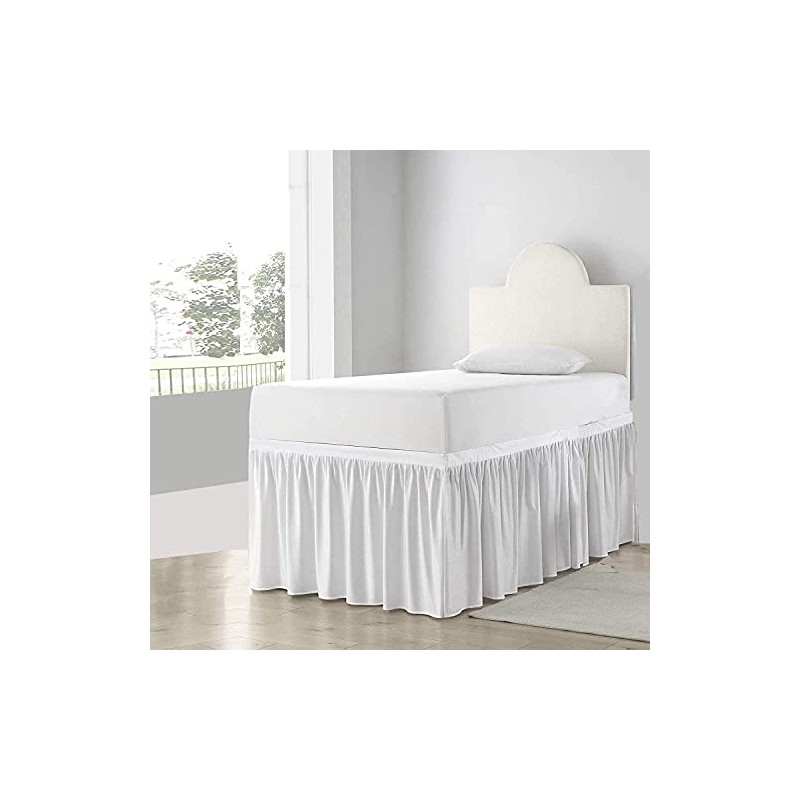 - About Bedskirt : This bed skirt having no platform, without lifting the mattress you can simply wrap this bed Skirt around your dorm twin xl bed and done. Easy to put it on and take it off. changing a bed skirt is a hard work, but this elastic bed skirt makes a hard work become so easy with perfect fitting