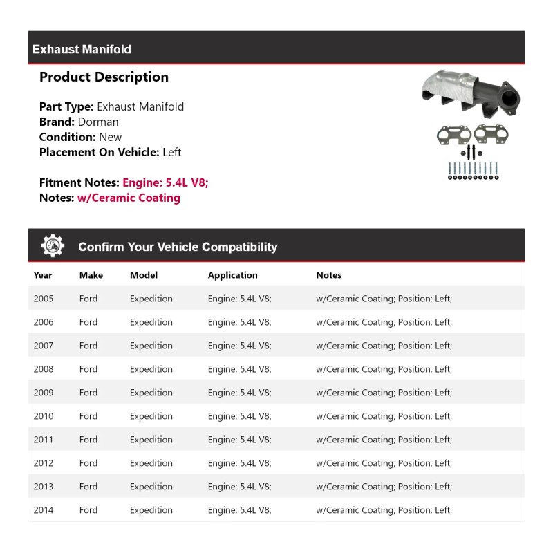 Dorman For 2005-2014 Ford Expedition 5.4L V8 Dorman Exhaust Manifold Left 2006 2007