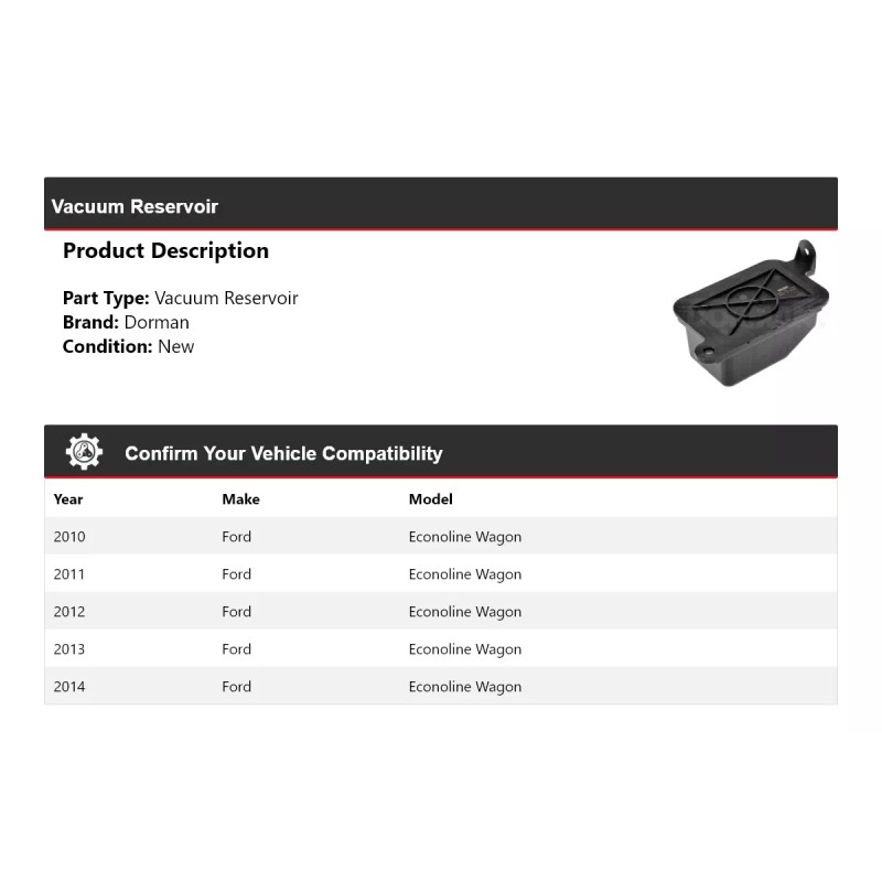 Dorman For 2010-2014 Ford Econoline Wagon Dorman Vacuum Reservoir 2011 2012 2013