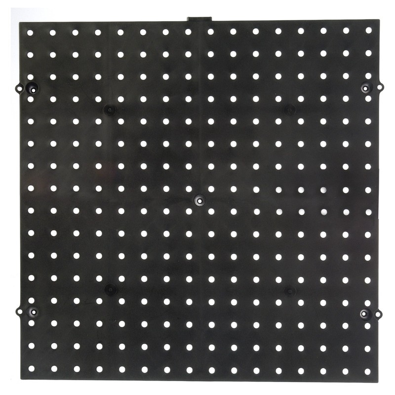 The 16 in x 16 in black plastic pegboard from Dorman Products features Fusion Lock and an interlocking design with male and female prongs that provide a secure fit for adding additional pegboard sections for more storage space. Pegboard sections mount on 16 in stud centers. Holds 50 lbs of evenly distributed weight, if properly installed. Includes 5 built-in standoffs to space pegboard perfectly away from the wall. Ideal for garages, basements, workshops and craft rooms.Dorman Hardware offers a wide assortment of high quality, affordable and easy-to-use items for every room in your home.
