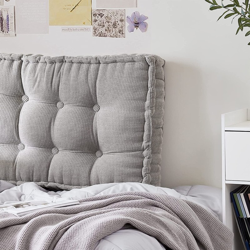 Theres no better way to make your dorm feel like home than with a cushy tufted headboard. Thats because high quality headboards dont just look good in your dorm room decor, but they also make your dorm bed more comfortable! This tufted dorm headboard adds a cushioned comfort to your dorm bed to help you get better sleep in college. Designed with an ultra thick inner filling, youll love leaning back against this pillow style headboard when youre kicking back and relaxing after class. This pillow headboard wedge doesnt require any assembly or installation, just lean it against the back of your Twin XL bed for an instant upgrade to your dorm room decor. In a range of trendy color options, youll find the perfect dorm headboard to match your dorm color scheme.
