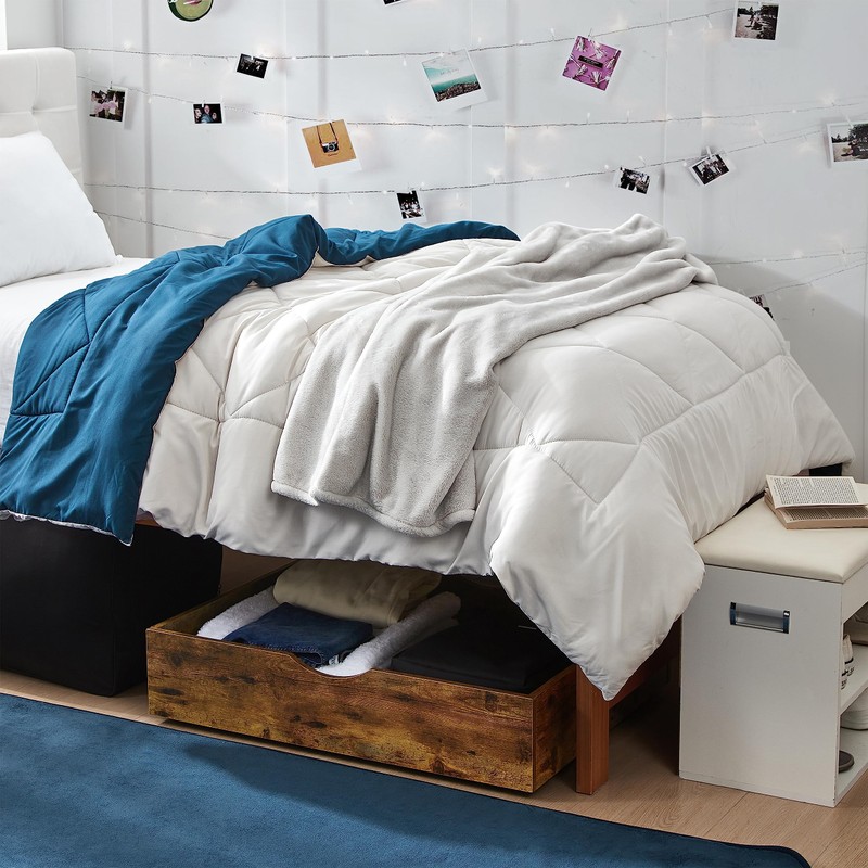 Utilize valuable underbed storage space and keep your items organized! With The Storage MAX - Underbed Wooden Organizer from DormCo not only will you have a durable storage option to store your items, but it will also add decor to your bedroom, college dorm room, living room, office, basement, or any other outlet of your home. This durable rolling storage bin with wheels fits perfectly under your bed for easy storage that is conveniently out of the way.