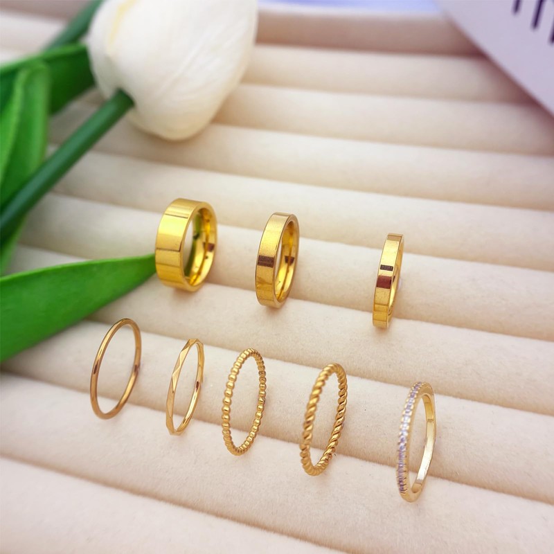 - Multi-size Gold Stacking Rings Set: This gold dainty ring set comes in five sizes, size 6-10, to fit most female finger sizes. Each thin ring not only has its own unique personality, but also can stack different fashion styles, which is an indispensable finger ornament for daily wear. Whether you like minimalist rings or dazzling combinations, this set of rings can satisfy you