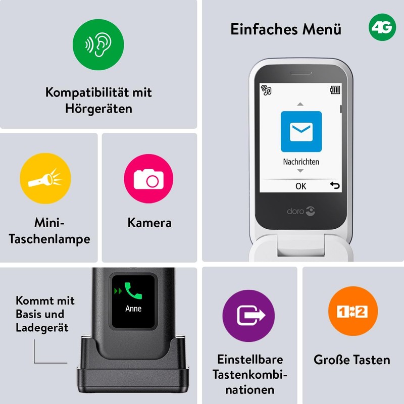 Doro 2880 4G Folding Mobile Phone for Seniors - Emergency Call Button - Easy to Use - Voice Controlled Buttons - Bluetooth