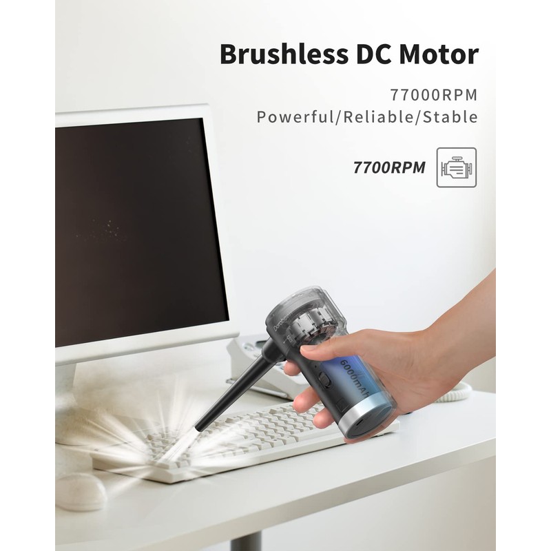 Compressed Air Duster, Blower & Vacuum 2-in-1, Cordless Air Duster, Portable Handheld Electric Duster, Power 77000RPM Motor, 10000PA Suction, for Keyboard Car Computer Toys (BLDC)