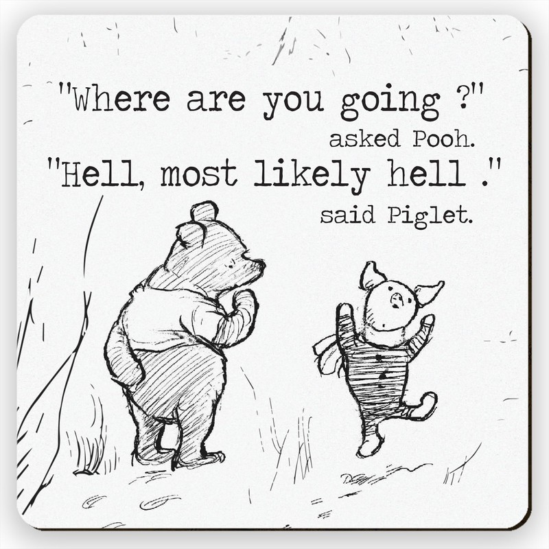 "Where are you going ?" asked Pooh. "Hell, most likely hell." said Piglet.