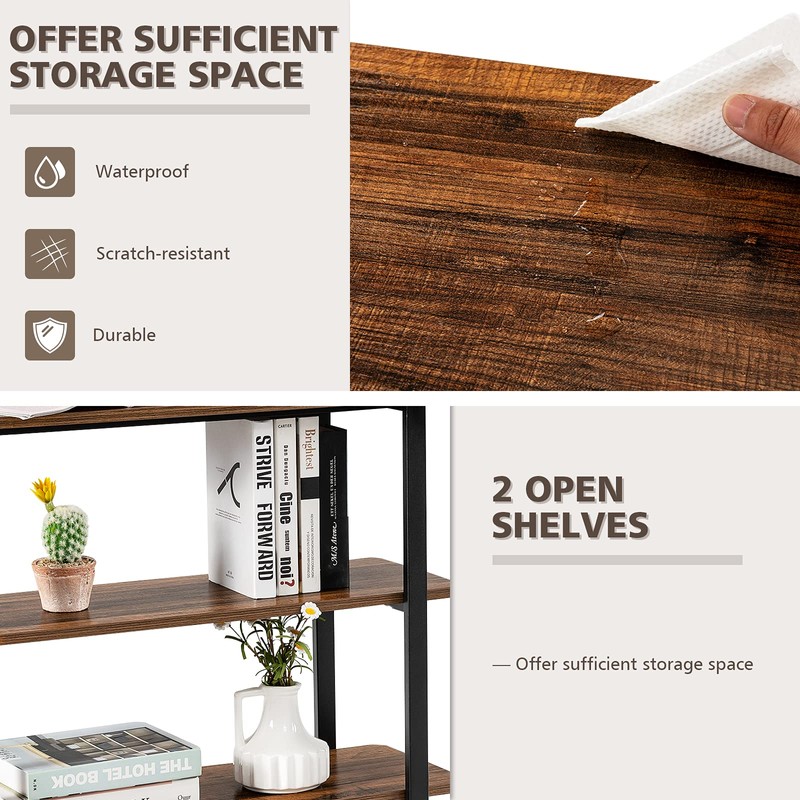 - 【Ample Storage Space Keep Items Organized】 There are 2 storage shelves to help you place all sorts of items, such as plants, books, ornaments and more, which free up more desktop space. Meanwhile, wide desktop also provides spacious space for your coffee and laptop. In this way, it is capable of taking the using comfortableness to high level.