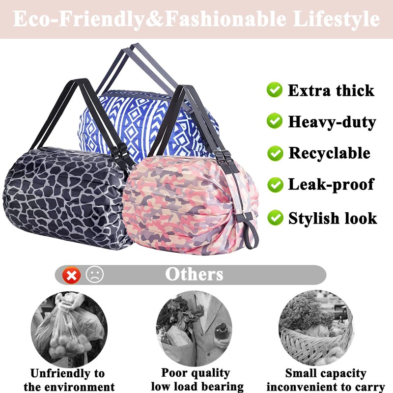 - Versatile: Portable, eco-friendly folding shopping bag, suitable for fitness, travel, and outdoor activities.