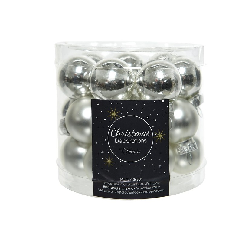 Dose mit 24 Stück Glaskugeln mit 25 mm Durchmesser, Silber