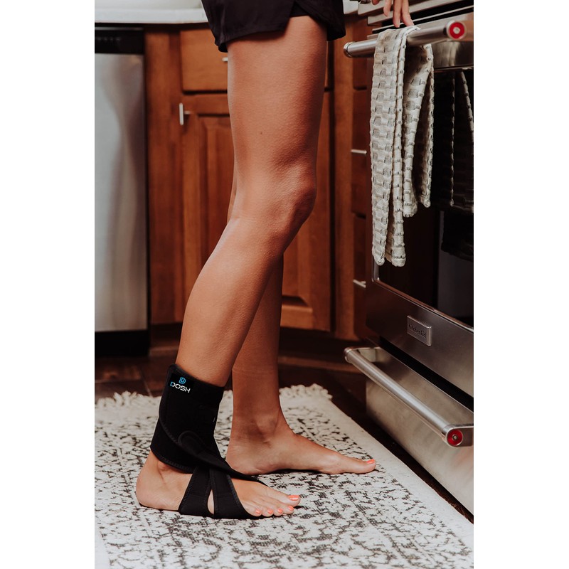 El soporte DOSH AFO para pies es un soporte suave y ligero diseñado para proporcionar apoyo a la dorsiflexión del tobillo (elevación hacia arriba del pie) para mantener el pie en alto y reducir la inversión del tobillo. El soporte tiene un diseño de talón abierto con una almohadilla acolchada de espuma para la máxima comodidad. Está diseñado para poder proporcionar elevación hacia arriba a tu pie al caminar para ayudar a restaurar una marcha más natural. También se puede llevar como una tobillera para dormir para mantener el pie en una posición neutral para aquellos que tienen caída de pie/pie o están experimentando fascitis plantar o tendinitis de Aquiles.