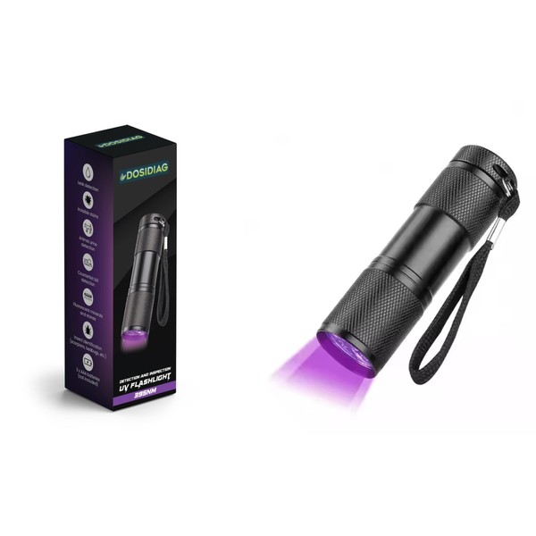 DOSIDIAG UV Flashlight 395nm - Multifunction Detector: Leaks, Animal Urine, Scorpions, Bed Bugs, Banknotes, Minerals, Stains