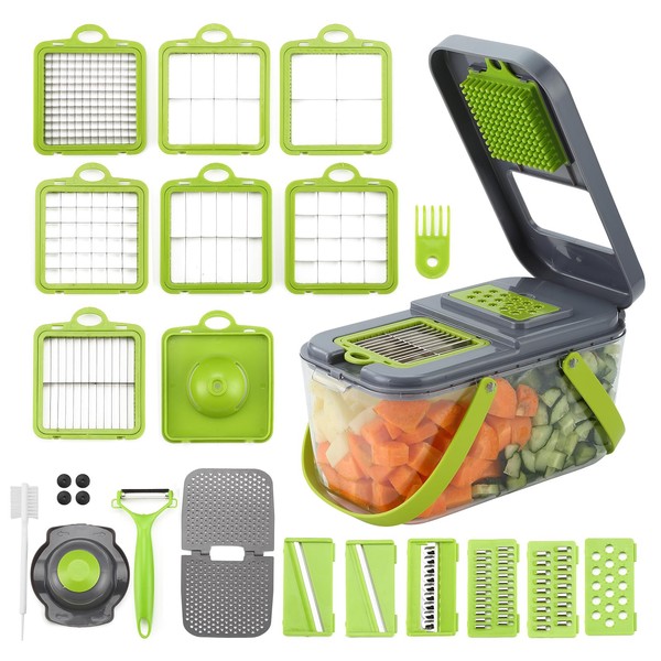 DOSMAMZ 22PCS Multi-function Vegetable & Fruit Chopper, Mandolin Food Slicer, Veggie Shredder with Container, Essential Kitchen Gadgets (22 in 1, Gray)