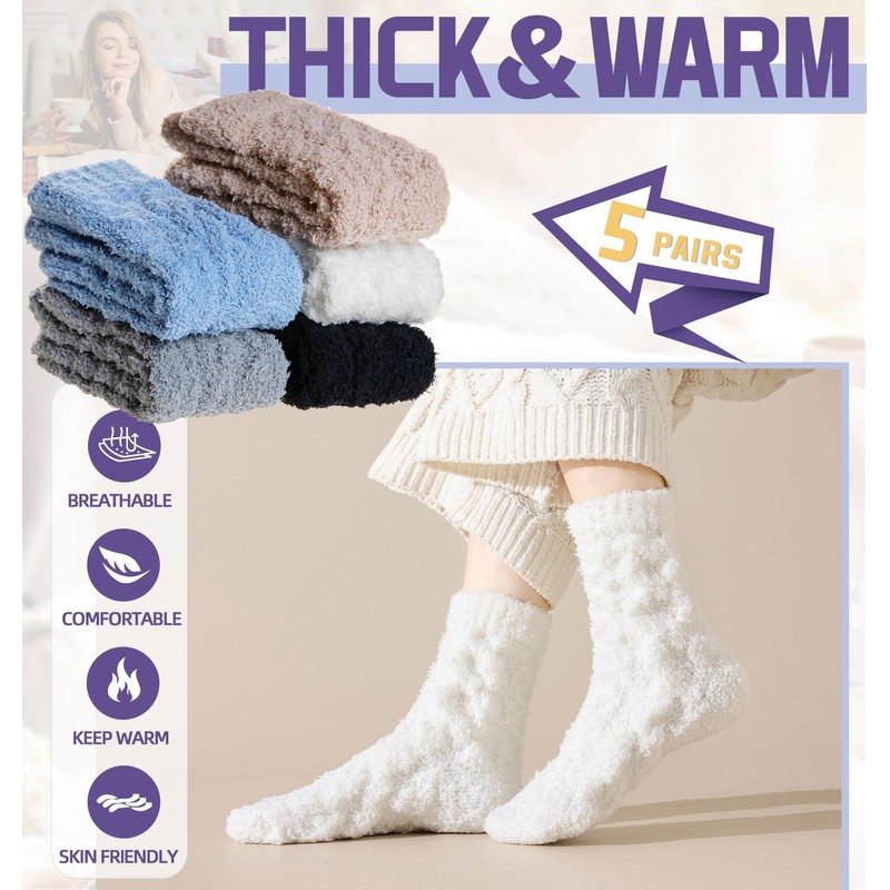 - SOFT & WARM- Fuzzy fluffy socks for women teen girls is blend of high quality materials, super soft coral velvet inner design, It's very soft, comfortable and breathable, no itching issue. This fluffy socks are very suitable for wearing in the cold winter.