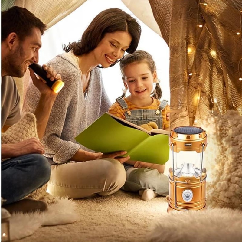 DOSYU Lámpara Linterna de Camping Recargable USB/Luz Solar, Impermeable, Plegable y Portátil con 2 Modos de Iluminación (Cobre)