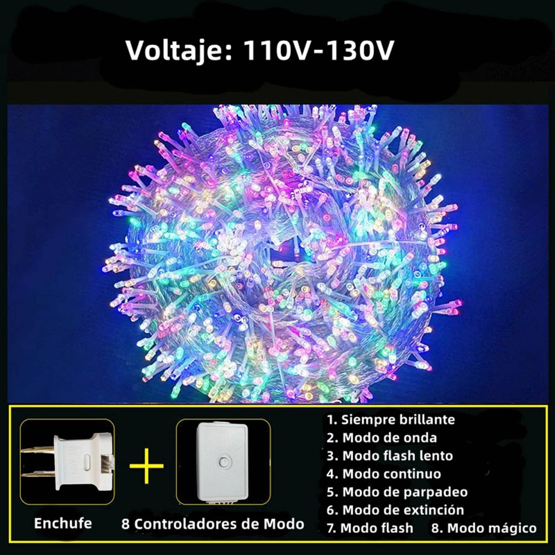 - 🎄【Buen tamaño】Mide 25 metros de largo y contiene 500 LEDs súper brillantes que dan un efecto hermoso y elegante al cogarlas.