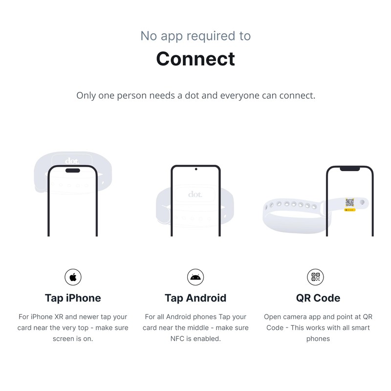 - No app or device requirement: Share your dot.Profile with anyone, as others don't need an app or a dot.device to receive your information.