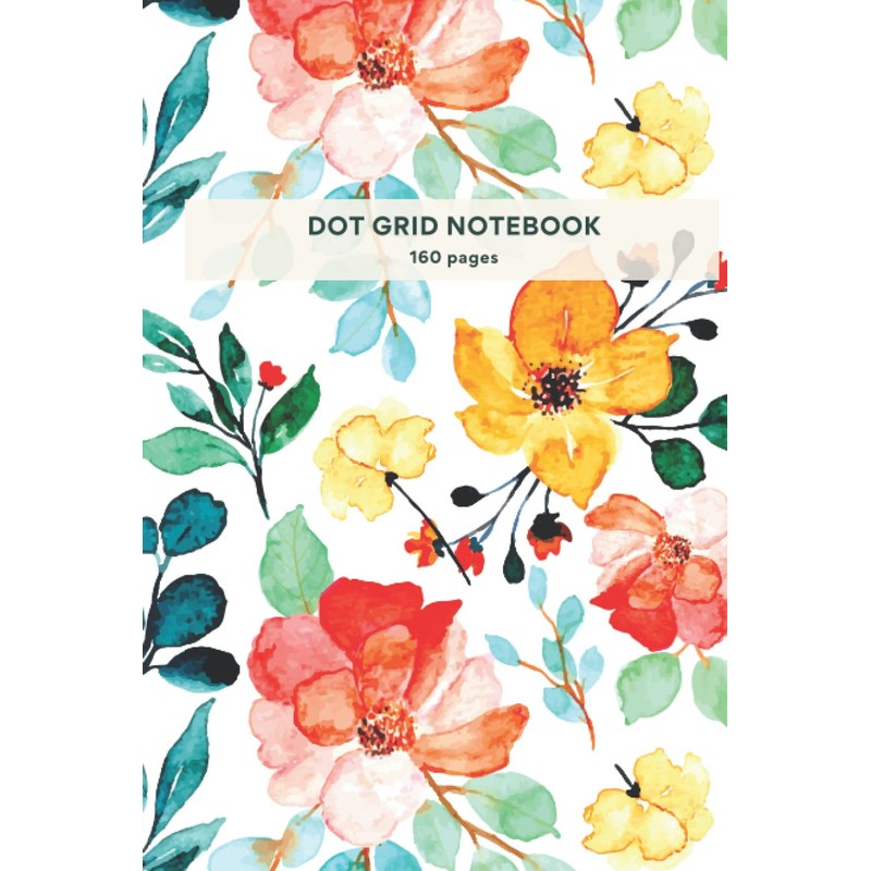 Dot Grid Notebook: Summer flower-themed hardcover notebook journal, 120 dot grid pages, 6" x 9" for girls and young women
