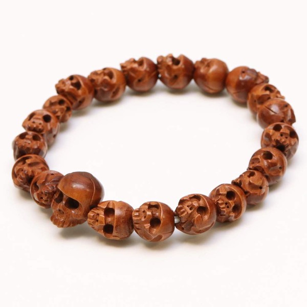 念珠 Dot Quartz Mala Bracelet Skull Carved Tsuge Wristlet 念珠 Skull For Men