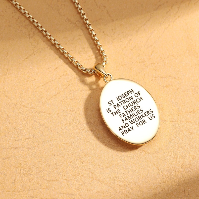 DOTBJ St Joseph Medal Necklace Gold, Patron Saint of Fathers 925 Sterling Silver St. Joseph Pendant with Stainless Steel Chain 22"+2"