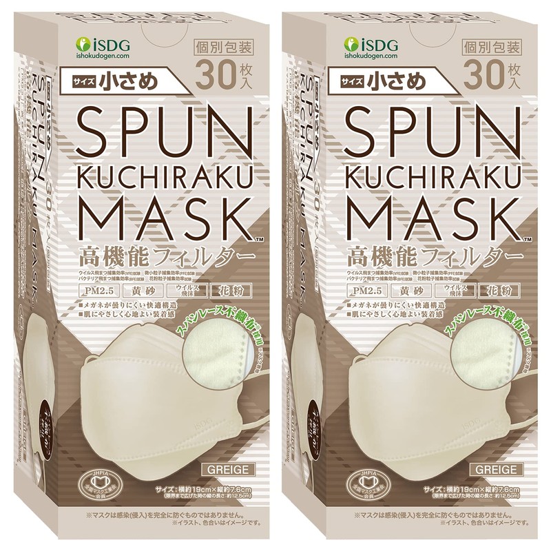 Dotcom iSDG SPUN KUCHIRAKU MASK (Spank Chilaku Mask), Small, Individually Packaged, 30 Pieces, Greige, 30 Sheets x 2 Boxes
