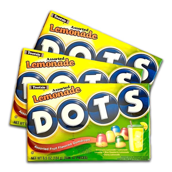 NLS Candy Co. Dots Lemonade Gumdrops, Assorted Flavors, Fruity and Chewy Summer Candy, Pack of 3-6.5oz Boxes