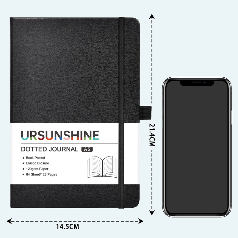 - PREMIUM THICK PAPER - 120 gsm dotted paper, our notebook journal is made of high quality acid free paper to help prevent from damages of light and airs to keep notes on the pages clearly. There are 128 pages/64 sheets in this ruled journal, which provide you with plenty space for planning or scheduling.