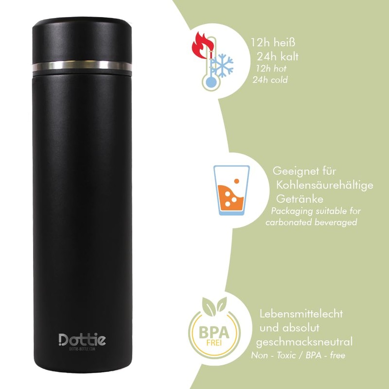 reliable leakage of liquids. Optionally, you will receive a tea strainer insert for this bottle.