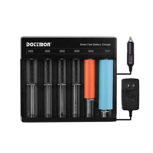 DOTTMON Fast LED Universal Battery Charger for Ni-MH Ni-Cd AA, AAA, AAAA, SC, C, D Batteries and 3.6V 3.7V Li-ion 18650 21700 26650 16340 4500 Batteries