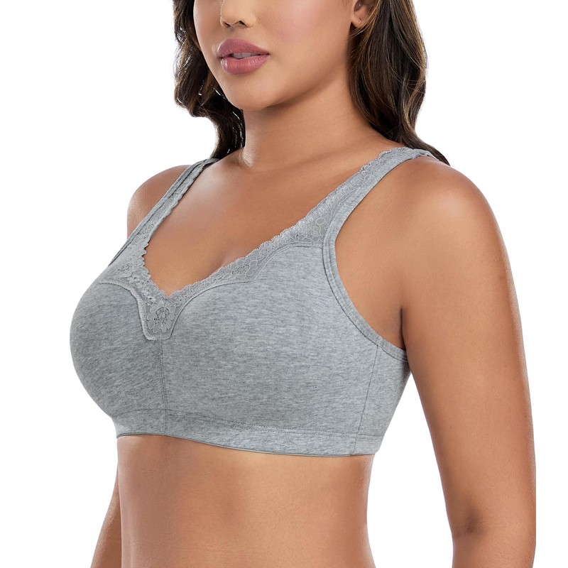 DotVol Women's Comfort Cotton Bra Full Coverage Wirefree Embroidered Lace Non Padded Lift Everyday Bras(Grey,42B)